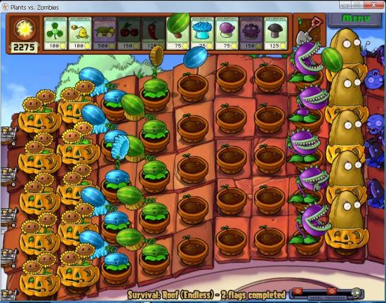 说明:此关卡为无限关卡中的房顶战 (据我所知现在大家玩到的仅仅是无限关卡中的水池战!!!)
