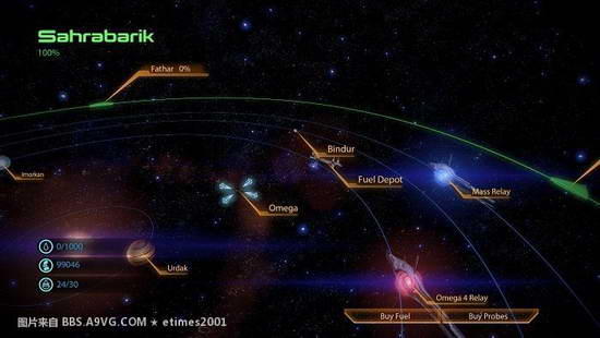 补充一下,想要提高扫描效率一定要升级飞船的采集科技:Advanced Mineral Scanner。另外由于每个星团只有一个mass relay所以星团内各个星系之间旅行是靠手动的,还会消耗燃料,而且其他星系一般都没有Feul Depot,所以去其他星系前一定要填满燃料,带足挖掘器!!