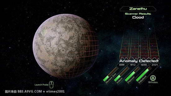 Launch Probe就是发射挖掘器,现在先别按,注意右边像电波一样的4道读数,关键就在这。