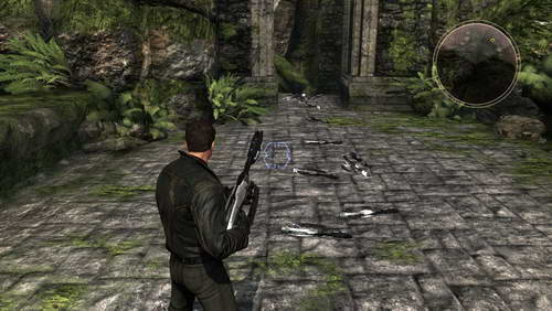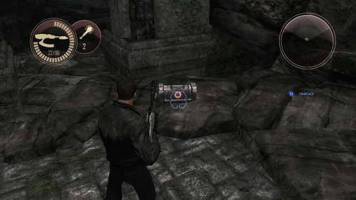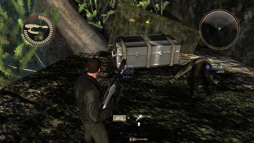 继续走吧,用手雷炸开门,然后轰杀出门的敌人吧,当然更快的方法是一颗手雷解决,扔完回到尸体旁还能捡。前进遇到敌人处地上有张纸,不捡白不捡,看到就捡掉吧。前行到CHECK点,记住吃个紫球,继续走,杀人,捡 东西,有个弹药箱
