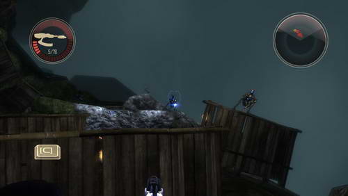 第一节.简单的操作飞行教程,W,S,L.Alt,然后就是UFO出场了,利用好L.Alt跟着打,弹药是无限的,注意别撞石柱和崖壁就行了,打爆几架后,便结束了第一次空战。