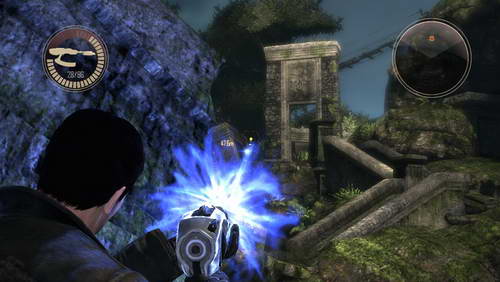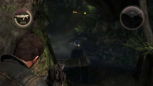 第二节.剧情过后,飞机已经挂了,男主和女主还活着,跟着女主走,不用急的,你跑她也跑,你走她也走,走到一处断壁,跳下去剧情,这个可怜的士兵就被搞挂了,过去捡起枪,又是剧情,男主和女主已经分开了(说真的,这两个主角真是没法看)