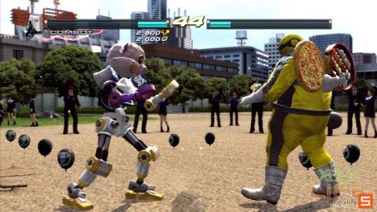 「Fight Lab」模式裡面登场的BOSS级角色几乎没一个是正经的!像是教学篇第一关的最后大魔王居然是个穿著黄澄澄特战紧身衣的肥仔,背上扛著自己都快不够吃的披萨和一盆寿司,还会不时地跟你分享「食物」,靠近他还会送你戴「猪头」(结果这「猪头」就这样打到最后都没有消失…)。
