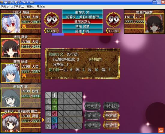 博丽的巫女极其难打,一些防低的单位直接被秒杀很正常,最好在L难度下打她,等级高比较好打,弄2、3个会加血的。为了打她,我把好多人都解雇了,只留了12个,减少旺气消耗,抓到莉莉卡和一个路人回血,以平均91级击败了她。挑战成功灵梦HP加100、全属性加1,得到技能:梦现想辉-缘-,同时得到最后一首BGM。