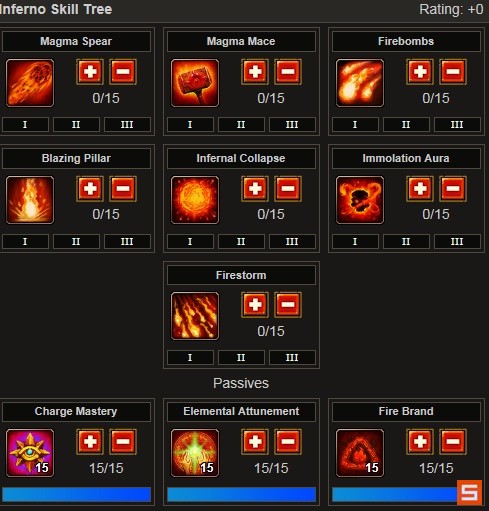 Death's Bounty死亡奖赏:大部分法师都加的技能,对飞弹流来说却很鸡肋,因为你缺魔法的时候还不会这个,够等级学的时候Charge Mastery已经加高,就不怎么缺魔了。加血也是,最高难度后期挨打一下基本上只有两个结果:快挂了和已经挂了……不挨打才是正道,快挂的时候磕药就是了。属性点:全focus。当然实际上是不可能全加focus的,因为法师初始15focus,而属性最高只能加到500,所以到100级的时候有495个点,其中485加focus,剩下10点加vitality吧。卷轴技能:Dervish,短时间+30%fast cast。Elemental Overload短时间+25%元素伤害,这两个配合Elemental Boon打boss的时候用,三状态全开,火力超强。