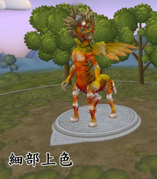 基色的部分,这隻使用的是渐层色材质,目前spore基色上色中提供两种渐层色的材质,不过挺难抓颜色的就是萝!