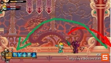 先跳到右面,把小怪引出来,在跳回中间,如图所示