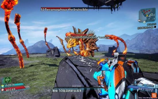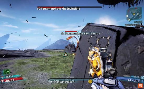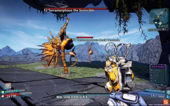 近身攻击,当你感觉晃动突然增大或者地面痕迹冲向你的时候,迅速起跳,跑向门口位置,卡好墙角,这样你就不会被打到了,这里注意!向上跳的时候很有可能会被右侧的石头卡住,向后退一点然后再向上跳就OK了(话说为了截触手的图,结果跳慢了,挨了一下= =)还有要注意的一点就是注意来自右侧的触手的远程攻击,时常消灭掉右侧的触手