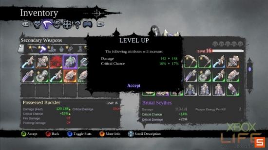 升级/合成装备带来非常多的便利性,但要好好地合出一把几近完美的装备得要花上很多时间,就拿我目前还在使用的主武器,想要不断找到Health on Crit这个能力的装备不简单,花开宝箱洗商店装备就花了我至少二个小时的时间。当然,为了杀怪打宝能更顺利,这一切绝对都是值得的。