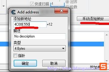 下面选择手动添加地址,类型选择4 Bytes 输入4C00E550