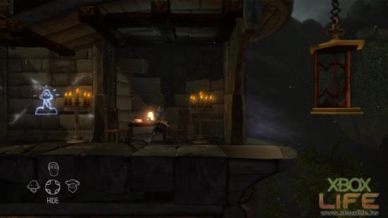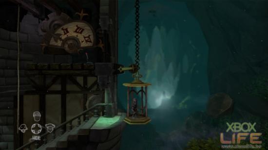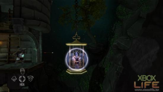 继续往上爬来到塔顶的下方,在这裡会看到一台机械式的升降梯,先让我们的骑士搭进去。