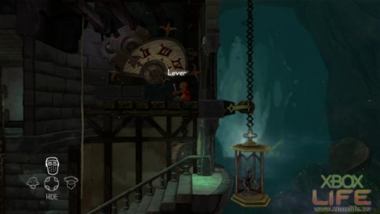 接著再让另外一名角色来操控升降梯。只要拉一下操纵杆,升降梯就会往下。