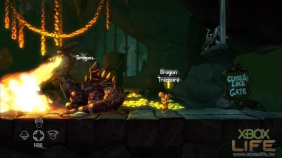 不过只要玩家一靠近宝藏,就会惊动恶龙并被牠的喷射火焰烧成焦炭。