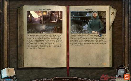跟随负责秘密事件调查的政府侦探克莱丽莎探寻这个神秘的漩涡。透过她的双眼,你将会在佛特南丁格尔寻找线索,解决精妙的谜题,与镇上的人对话接近事件的核心。你的每一步行动都将带你更加接近令人吃惊的发现,游戏里你会体验到两种隐藏寻物游戏方式,在旅途中用心发掘留意背景中的所有物品,惊叹于电影片段过场带来的新的冒险游戏标准。你害怕了吗?或你已经勇敢的走向未知的迷局了?