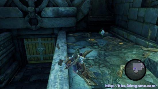 进入隐道之后,先不要急着前进,沿着阶梯一路向上,在下图所示的区域打破木桶即可发现盖硬币