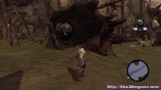 进入The Charred Pass之时,观察左侧巨大的空心枯木之内(下图所示)