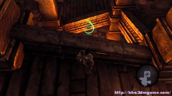 圣釜殿一层区域,找到骷髅钥匙之后,打开上锁的大门,来到下图所示的球体谜题房间;解开谜题之后,沿着一边的阶梯反跳取得该硬币