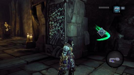 来到废黜君王之墓B4层,来到下图所示的亡灵之墓入口处,在大门上层即可发现该石头