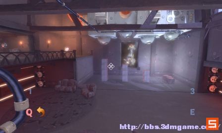 楼梯下面有一个红色电池,放在那个充能器里面。这样就激活了两个技能。然后用技能E将铁箱子放在盘子上,再将纸箱子放在另一个盘子上,激活技能Q(铁块),门开。