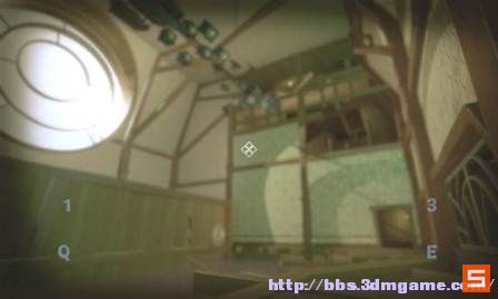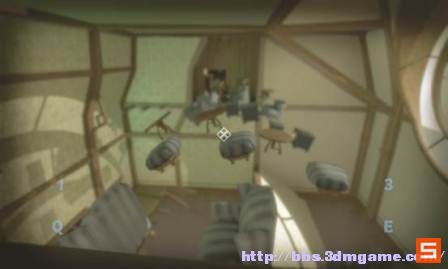 爬到3楼,可以看见家具飞在空中,趁这段时间跳过去就好。