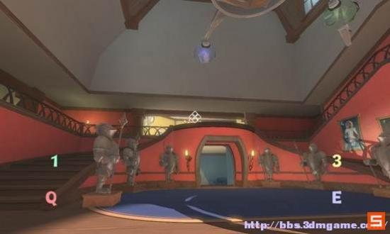 穿过幽暗又寂寥的长廊,刚一走进明亮的房间。半空就飞来无数的家具,赶快逃到右边的门那里去。