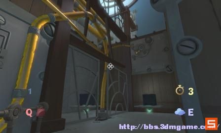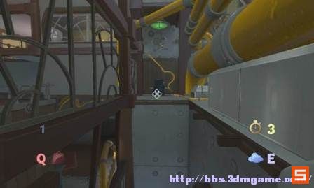 上了第二层之后,可以用箱子和跳台得到一个机器人。然后向右走,要先把箱子扔到对面,然后自己再从下面用跳板跳过去。、