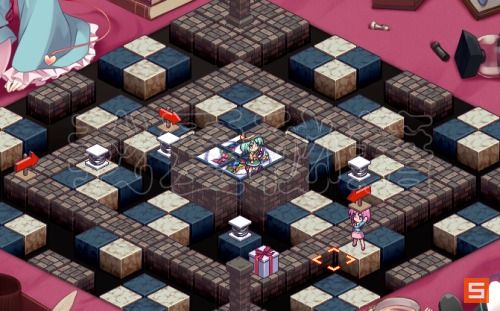 简单分析:因为恋如果从高处下落会砸掉礼物,对于这个礼物的地形,可以看出必须让恋一直从下方走动;另外,方向标很少,因此要用反墙术~