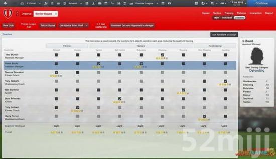 训练方面你也可以自由安排,也可以让助理教练分配,这点和FM差不多的。