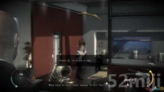 在直觉系统中还有类似《细胞分裂》的标记系统,按下手把LB键进入时间暂缓模式时,再按X键进入Tag Shoot系统,玩家可用LT键来手动瞄淮附近的敌人,并用RT键来锁定射击的部位,完成以上动作之后便能再次按X启动Tag Shoot;此时游戏会直接进入多角度运镜的击杀动画,凡被爆头或被射击的目标都会跑过一次中弹精彩镜头。
