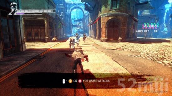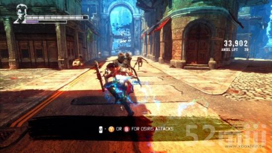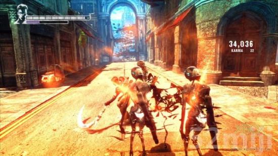 而前作中拥有恶魔血统的Dante会使用的「魔人化」技能也在《DMC鬼泣》被保留下来,玩家只要同时按下左类比与右类比摇杆就能让Dante发动魔人化的能力。魔人化后的Dante造型就有如前作的主角一般,除了所有能力大幅提升之外,此时所有的敌人都会强制浮空,并且动弹不得任由玩家宰割。
