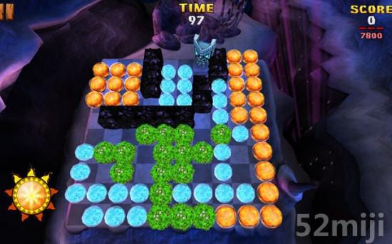 你可以通过移动来将小球与你所在的位置互换,走到小球跟前,按下空格可以打破小球。被打破的小球将会和炸弹人一样,朝着前后左右四个方向散射,同类型的小球将会发生连锁反应被打破。一次性打破的小球越多,将会获得越多的钻石奖励。