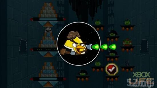 《愤怒的小鸟:星球大战》和电影《星球大战》有著一样的片头动画和音乐,一样有往上飞出去的字幕和震撼又熟悉的配乐,不过人物主角可就从人型变成鸟类啦!主要的故事当然还是绕著《星球大战》走,也就是这些鸟儿们将扮演天行者路克来对抗黑武士的邪恶势力,当然这些邪恶势力就是这些偷蛋的猪仔们啦!穿上这些《星球大战》角色的鸟儿和猪仔们还真是有趣,有种搞笑却又很正经的违和感,不过别看他们这样cosplay搞笑搞笑的,换上角色服装后,每一隻鸟的能力也都和原本的《愤怒的小鸟》不太一样哦!原本的红鸟变身为有一头金髮的路克,在原本的《愤怒的小鸟》裡面,这隻红鸟就是最基本的攻击方式而已,不过在游戏中只要把他弹射出去,再按下A键还可以挥舞光剑让攻击的破坏程度大幅增加!而原本是炸弹的黑鸟现在也化身为绝地武士欧比王,飞弹过去按下A还可以用原力来震坏建筑物,黄鸟则是变成拿著雷射枪的韩苏洛,飞弹出去按下A键还可以使用雷射枪来进行攻击,而且可以利用右类比来描准攻击目标,也就是说可以一次打两个地方,超级好用!