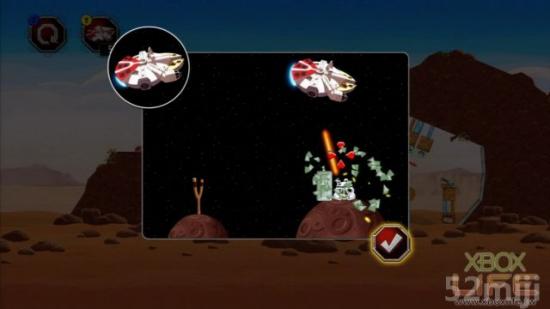 除了鸟儿们的变身之外,猪仔当然也是变成黑武士和複製人大军,每隻帝国猪仔的防御和能力也都不一样,而且游戏场景除了一般地球的引力之外,也增加了外太空的游戏场景,在外太空的场景鸟儿的攻击不再只是正常的地球引力抛物线,而是会根据不同星球的引力来改变降落的攻击路线,连建筑物的碎片掉落方式都不太一样,第一次玩到这个也觉得很有趣,一开始总是抓不到行径的路线规则,不过多试几次就能轻鬆上手萝!而且在游戏中可以叫舰艇来进行攻击,操作方式和控制鸟一样,选择好降落定点后弹出,接著就会有一堆飞弹来攻击那个定点萝!不过这些都是有使用限制的,过关获得的星星除了可以开启更多的关卡之外,也可以额外获得舰艇攻击的次数。