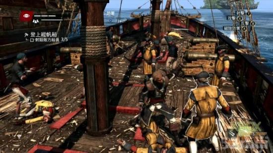 把敌船打到红血再接近按住B键就可以登船劫掠了!
