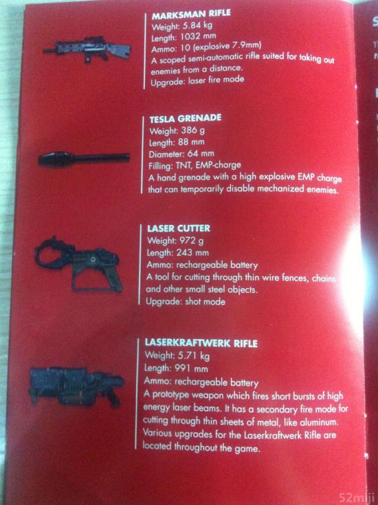 一件可短时间高速射击高能量镭射光线。它拥有第二种射击方式,是可以切割薄金属板,例如铝,这玩意的多种升级都在游戏的各个角落。