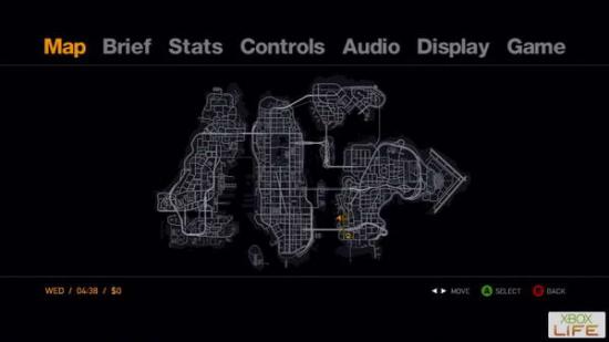 出了屋子后画面会提示一旁的停车格可以停放你自己喜爱的车,对街的热狗摊卖的大热狗可以恢复阿尼的体力,而小地图的外圈则是体力值与武装能力值,所以如果体力上有问题就多找找卖食物的补充体力吧(没钱就去暗巷…)。往右边可以见到一台在停车格的车子,四处望望之后就能把车顺手牵走开始兜风了!地图标示「R」的地方是目前的目标位置,往后所有主线任务都会用英文字母标示,所以只要看著英文字母就能一直过主线任务。R表示目前为Roman的任务,其他主线任务也会以该角色的第一个英文字母表示。