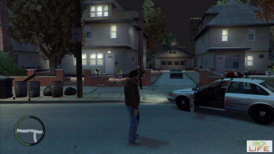 正巧附近有台警察匆匆忙忙的开过来,门也没关的衝近某间民房,等那位警官稍微离开阿尼的视线后,警车一台入手便开始进行货车的盘查,总计三台之中仅有一台是车上同时有两人,只要在货车附近轻压一下左类比即可启动警笛,下车后盘查他们时居然连手枪都拿出来了,别理他们直接把货车开到指定地点吧!