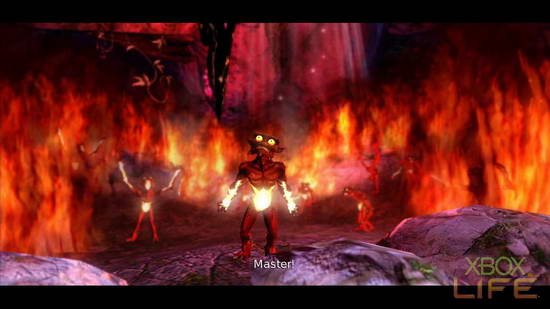 继续沿著一旁的路口走到「红色小鬼聚集地」,火红色的小鬼看到魔王的到来非常开心,并且会不断地呼喊Master!