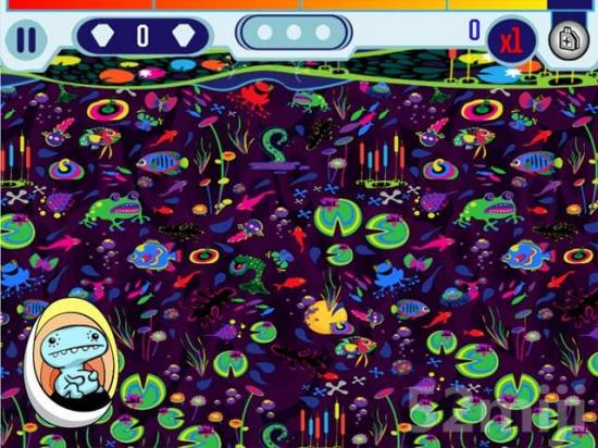 游戏玩法简单,在开始有会有详细的上手指导来告诉你如何操作,及各种宝石的分数和特殊物品的功能等等,进入关卡后,游戏令人眼花缭乱的场景中隐藏了宝石、汽油、以及飞盘,找出它们然后丢个孬哥吃,汽油可以用来增加时间,所以别一次性吃完。连续时间内吃的越多,加的分数也就越多。
