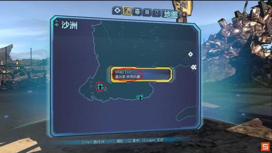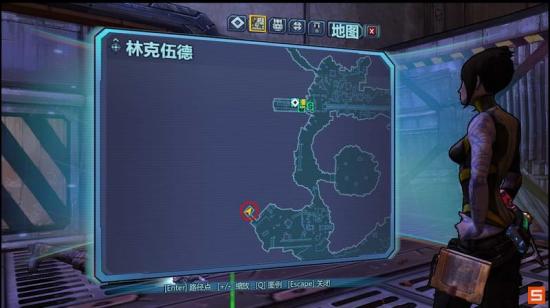 取得方式:林克伍德可由沙洲传送点到达,传送点的位置如图所示,在一辆火车上。需要先完成林克伍德任务板上B叔大闹银行一系列任务,其中出现的小BOSS,Mad Dog,有几率掉落