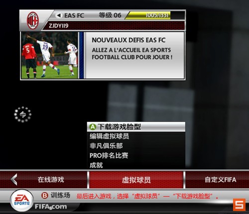 FIFA13的操作方法和FIFA12差不多,但有一些区别。脸型制作流程还是一样,不过最后在游戏中的导入方法不同了,需要注意一下,FIFA13中没有单独的“虚拟球员”选项了。制作好的脸型的取得有两个渠道:一是在进入生涯模式后创建虚拟球员的时候选择“下载虚拟球员脸型”。二是在进入非凡俱乐部模式后创建虚拟球员的时候选择“下载虚拟球员脸型”。两者不通用,就是说需要分别创建。这一点不是很理解EA的做法,因为完全可以像FIFA12那样俱乐部的虚拟球员和生涯模式的虚拟球员档案通用的。最后,本人的ORIGIN ID:zjdy119,加好友啊!