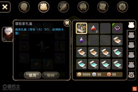 7、这点也非常重要!打开礼包!也就是使用礼包!(你会发现你的第一格礼包没了!)