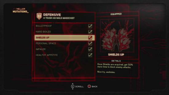 当装备了护盾的时候,防御敌人攻击的时间增加50%(这里的“防御”指的是完美防御……)