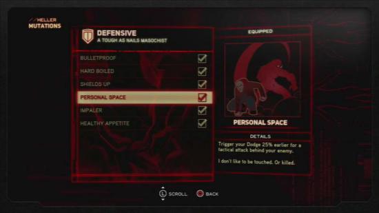 跳到敌人后方以实行攻击的躲避提早25%(好像就是在敌人攻击前会早一点提示你躲避……)
