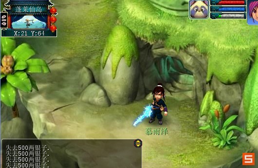 准备向魔王寨进发,还是要先练练级啊,魔王的牛妖太猛了。(可用FF先飞朱紫国出来)~!练好级后进魔王寨,找牛魔王,对话后有战斗。很好打,有FC和TG一起封,基本不伤血打死。战斗完后又是剧情对话,要你去狮驼岭救大大王【也不说清救谁害我二大王 三大王都找咯】,找到大大王对话,又战斗咯。打完收工剧情再对话,让你去PS找人了。先不要用FF,接着走到狮驼岭门口又会说两句话,对话完后再用FF飞长安。从CA—国境—境外进盘丝。进入PS会出现剧情,主角幕看见二号MM昭雪被人打,过去顶着埃了一下,俩人同时受伤了。昭雪伤很重,韩薇和玉秋决定留下抗BOSS,幕和徐风则御剑带着昭雪飞回化生寺见法明长老,法明的【我佛慈悲】技能不够强力,救不了昭雪MM,但是法明知道谁能救,就是那牛人梦玄子的九转还魂丹。幕为了救妹子,一个人上路了,去蓬莱仙岛。传送之前回了一趟师门,程大神让幕去龙窟7层收集龙鳞和凤羽打造神兵。接着就传送到蓬莱仙岛里,在蓬莱仙岛先要找一个山洞,就在地图左下方的荷花池上面一点,那里会找到梦玄子。