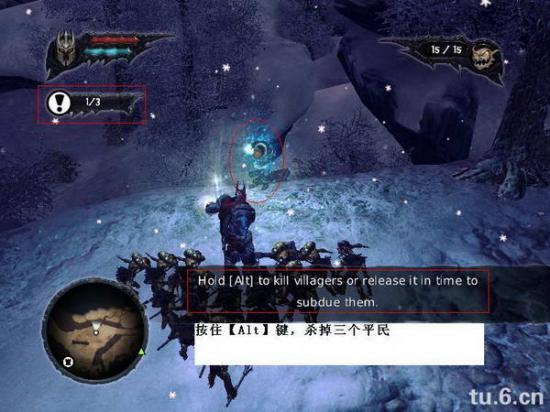 台了石饼出地洞,然后把石饼抬回家,想进行下一步,却发现路被堵了,这里可不是要你开路啊!很多朋友都卡这里了,其实很简单,任务要求你用闪电杀三个平民,用闪电控制三个平民。
