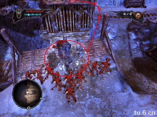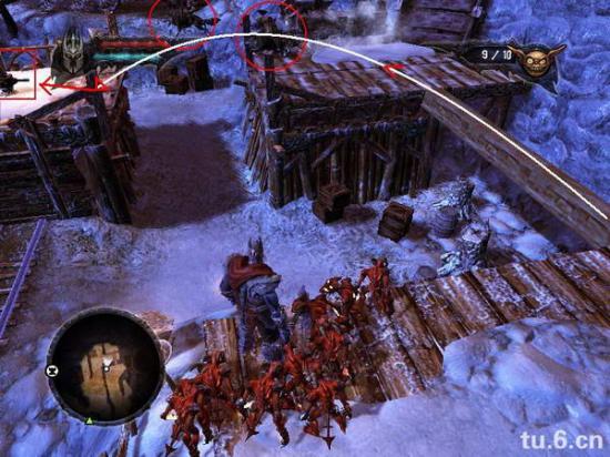 然后开另一边路,消灭军队冲到箭塔前,用电把上面的人电下来,自己上去,然后用箭塔把军队射死,从城门右侧走,然后看到铁轨,顺着铁轨前进