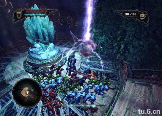 没啥好解释的,被火蜥蜴围住不知道怎么打?很简单,等火蜥蜴滚到坡口的时候,电它一下,它就下来了,以此类推,全杀了后继续,然后是侏儒,要先把高塔之心抬起,然后用蓝鬼去水中把石像推过来盖住洞口