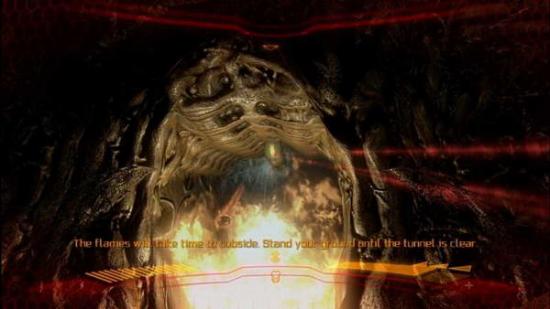需要把上方的水管打通,等一段时间后,火焰就被水所熄灭,不过,在这段期间,你要保住性命,面对众多异形,粒子炮和回旋镖都相当棒,火灭后一路跑,这一章也就结束了。