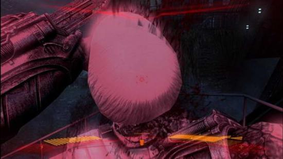 再跳上去从后面取下他的头颅,之后便进房间扫描瞳孔,然后跳进已打开的大门里,在远处先叉光所有的敌人,然后到箭头位置扫描瞳孔,进入电梯后,进陷阱了,会开始放毒气,需要马上打烂控制器,除了电梯干掉几个敌人,进房间叉掉红色开关,然后走到升降梯那,E下绿色按钮,叉死2个守卫的敌人,按着箭头前进,这里会碰到异形,